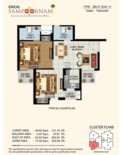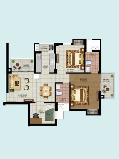 | 2 BHK + S | 1060, 1070 Sq.Ft. | On Request |
