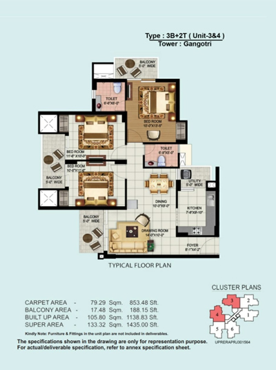 | 3 BHK | 1350, 1435, 1425, 1560 Sq.Ft. | On Request |